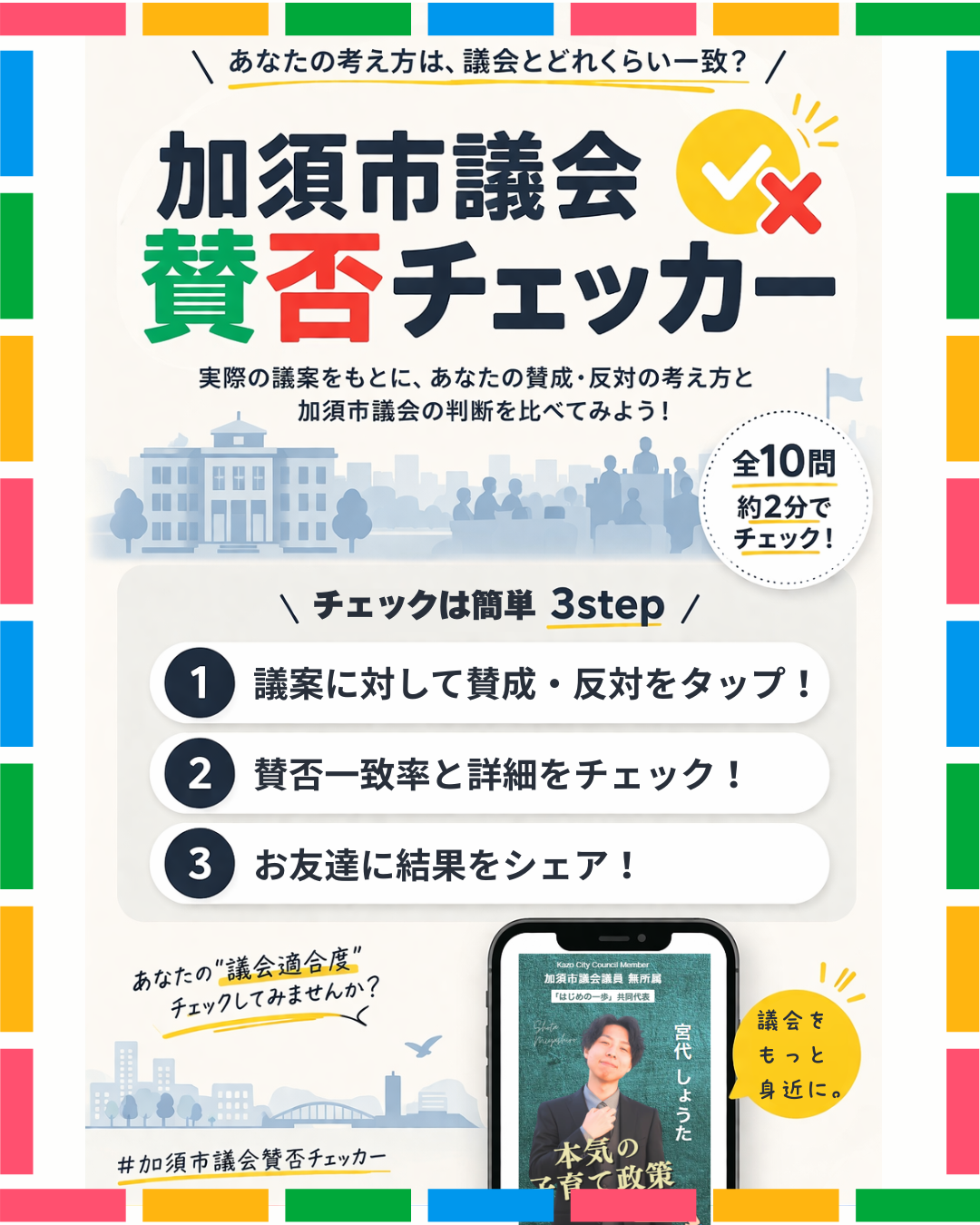 あなたの感覚が加須市議会とどれくらい一致しているのか